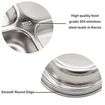 Korean Stainless Steel Divided Plates by KS&E, Little Kids Toddlers Babies Tray, BPA Free, Diet Food Control, Compact Serving Platter, Dinner Snack, 4 Compartment Plate Silver, Set of 2