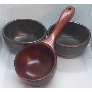 Korean Traditional Ceramic Bowls and Wooden Scoop Set for Makgeolli Dongdongju(Korean Raw Rice Wine
