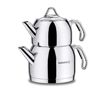 Korkmaz Provita Maxi Capsulated Turkish Tea Pot Set with Ergonomic Handle, Polish Finish, 1.1 & 2 Quart