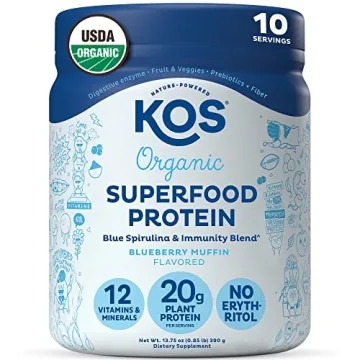 KOS Plant Based Protein Powder - Blueberry Muffin Flavor, 10 Servings