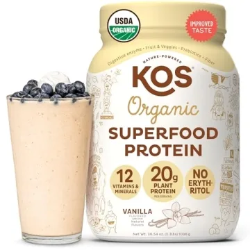 KOS Vegan Protein Powder Erythritol Free, Vanilla USDA Organic - Pea Protein Blend, Plant Based Superfood Rich in Vitamins & Minerals - Keto, Dairy Free - Meal Replacement for Women & Men, 28 Servings