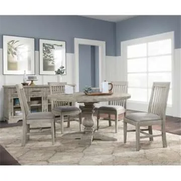 Show moreThe Kosas Home Sagrada 55" Table in Sierra Grey is not just a piece of furniture; it's a statement of style and craftsmanship. Designed to comfortably seat up to five people, it is perfect for family meals, game nights, or hosting friends. The solid wood construction ensures that this table is not only beautiful but also built to last, with a sturdy design that can withstand the test of time. Made from reclaimed pine, every table has its own unique character, showcasing natural imperfections that add charm and warmth to any dining space. Plus, the hand-finished and distressed details contribute to its rustic yet elegant appeal, making this table a versatile addition to both modern and traditional homes.
