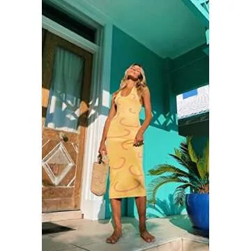 KOSUSANILL Y2k Dress Knitted Knit Backless Sexy Summer Going Out Club Party Trendy Bodycon Halter Dresses Yellow