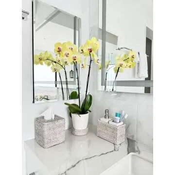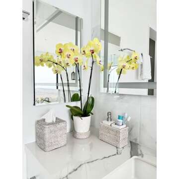 Introducing the KOUBOO 1030056 Tissue Box Cover, an elegant addition to your home that marries functionality with impeccable style. Measuring 5 inches x 5 inches x 5 1/8 inches, the inner dimensions are perfectly designed to hold any standard-sized tissue box securely. Hand-woven from high-quality rattan, this tissue box cover features a beautiful white wash finish that brings a touch of minimalist sophistication to any room. Its lightweight yet sturdy construction makes it easy to reposition, while the wipe-clean...