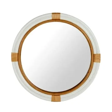 Show moreTransform your living space with the enchanting Kouboo Nautical Decorative Wall Mirror, a stunning piece that seamlessly blends coastal charm with artisan craftsmanship. Expertly handmade by skilled artisans using sustainable rattan, this round mirror is more than just a decorative item; it’s a statement of style and elegance. Measuring an impressive 30 inches in diameter, the mirror features a 3-inch frame width and a sleek 1.5-inch depth, making it the perfect focal point for any room in your home, be it the bedroom, bathroom, or living room. The natural hues of the rattan light up your decor, while its timeless design ensures it remains stylish for years to come.