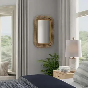 Show moreIntroducing the KOUBOO Rattan Coiled Rectangular Wall Mirror, a perfect combination of elegance and functionality that will elevate your home decor effortlessly. This exquisite mirror measures an impressive 23.5 inches wide by 35.5 inches high with a depth of 2.75 inches, making it an ideal centerpiece for any room. Expertly crafted, this piece features a distinctive hand-woven rattan design that adds a touch of rustic charm to your living space. Whether gracing your living room, bathroom, entryway, or bedroom, this mirror is a stunning addition that is sure to catch the eye.