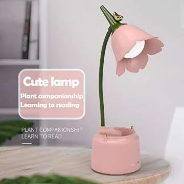 KoudHug Pink Desk Lamp, Rechargeable LED Lamp with USB Charging Port, Kawaii Desk Accessories, 3 Color Modes & Stepless Dimming, Cute Lamp for College Dorm Bedroom Reading