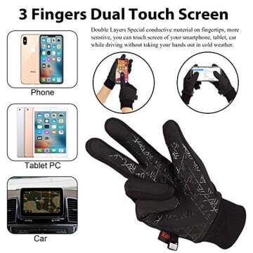Koxly Winter Gloves Men Women Touch Screen Glove Anti-Slip Windproof Waterproof Texting Gloves for Running Cycling