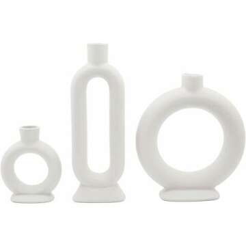 Show moreThe Koyal Wholesale Ceramic Abstract Taper Candle Holders for Candlesticks, Set of 3 in Matte White are a sophisticated and chic addition to any home decor. This set features three distinct, yet harmonizing, designs that are sure to complement both modern and traditional interiors. Crafted from high-quality ceramic, these candle holders boast a smooth matte finish that exudes elegance and contemporary charm. Whether displayed on a dining table, mantelpiece, or as part of a centerpiece, these candle holders are bound to attract admiration and become a focal point in any setting.