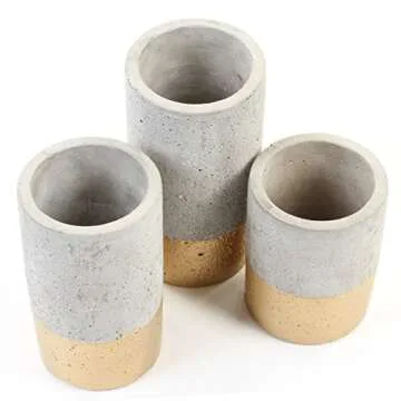 Koyal Wholesale Concrete Effect Cylinder Vase Centerpiece Set of 3 for Concrete Wedding Centerpieces, Concrete Wedding Decorations, Cement Desk Accessories (3, 4", 5", 6")