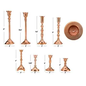 Koyal Wholesale Rose Gold Mixed Taper Holders, Set of 10, Mismatched Candlesticks Set, Bohemian Decorative