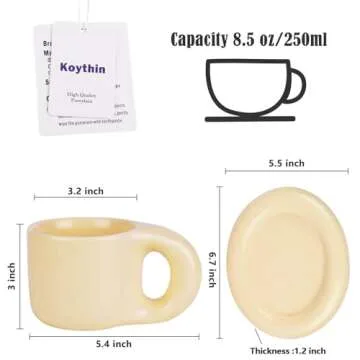 Koythin Ceramic Coffee Chubby Mug Saucer Set, Creative Cute Fat Handle Cup with Saucer for Office and Home, Dishwasher and Microwave Safe, 10 oz for Latte Tea Milk (Milky Apricot)