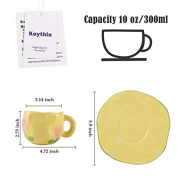 Koythin Tulip Design Ceramic Coffee Mug with Saucer - 10 oz Multi-Purpose Cup for Coffee, Tea & Milk