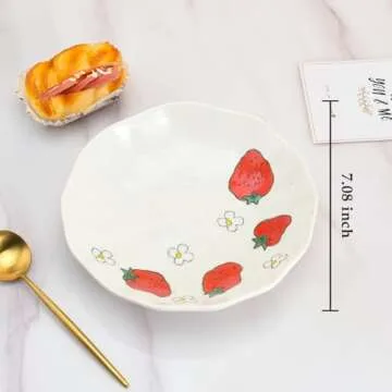 Koythin Salad Bowls, Dinner Plates, Ceramic Handmade Dessert Appetizer Diet Bowl, 8-Inch Stoneware Plate for Home kitchen and Party Decorations, Microwave and Dishwasher Safe (Strawberry)