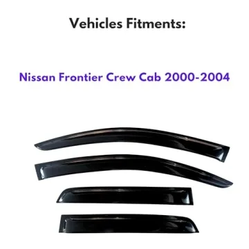Show more Transform your Nissan Frontier Crew Cab into a stylish and functional vehicle with the KPY Rain Guards. Specifically designed for models from 2000 to 2004, these window visors are crafted to offer an impeccable fit while providing maximum protection against the elements. Made from premium quality materials, they are not only resistant to harsh UV rays and scratches but also feature a robust 3M tape that ensures a secure and lasting attachment. Whether you're driving under the rain or in blazing sun, these visors enhance both style and utility.