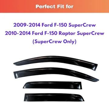 Show moreElevate your driving experience with the KPY Out-Channel Rain Guards, specifically designed for 2009-2014 Ford F150 SuperCrew models, including the iconic 2010-2014 Ford F-150 Raptor Crew Cab. These 4PC window visors not only bring functionality but also a touch of sophistication to your truck. Crafted from premium materials, they ensure a perfect fit, making your ride both enjoyable and stylish. Whether it's rain or shine, these vent deflectors are engineered to withstand the elements while enhancing the aesthetic of your vehicle.