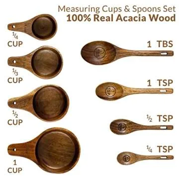 Kraft Kitchen Wooden Measuring Cups and Spoons Set - Eco-Friendly Kitchen Measuring Tools