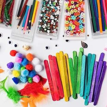 Show more Unleash your child's creativity with the Kraftic Arts and Crafts Supplies Set, designed specifically for young visionaries aged 4 to 8! This thoughtfully curated craft supply center is brimming with over 2000 pieces, including everything from colorful markers and googly eyes to glittery pipe cleaners and felt pom-poms. Each item is meticulously organized in easy-to-access drawers, making it simple to find the right materials for every imaginative project. Parents can rest easy knowing that cleanup is a breeze, as children can sort and store their items without fuss.