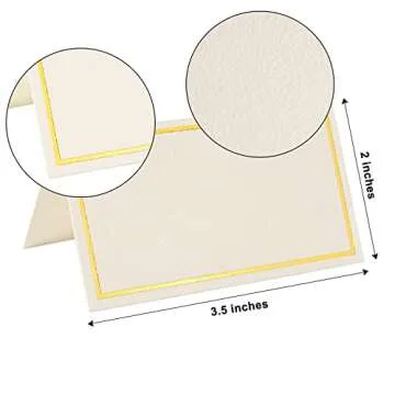 KraftiSky 100 Pack Place Cards for Table Setting with Gold Foil Border Table Tent Cards for Seating Perfect for Weddings, Dinner Parties, Banquets 2” x 3.5”