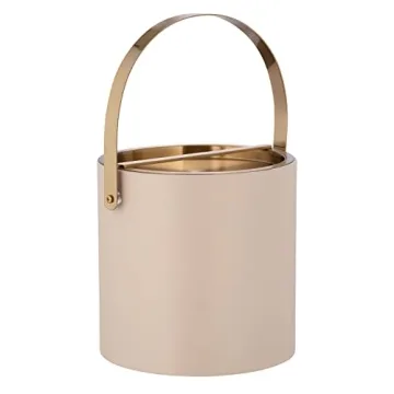 The Kraftware Ice Bucket stands out due to its stylish leatherette wrapping, brushed gold accents, and superior insulation.