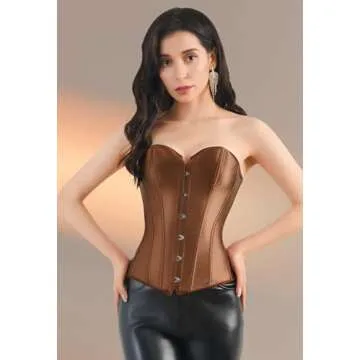 Show more Introducing the Kranchungel Brown Corsets for Women, an exquisite addition to your wardrobe that perfectly marries elegance with functionality. Crafted from high-quality satin material, this corset is designed for multiple occasions, whether you’re attending a wedding, a Christmas party, or indulging in a night out clubbing. With a seamless blend of style and support, it features a front busk closure and a back lace-up design, ensuring a custom fit that shapes your silhouette beautifully. Each corset is boned with 12 flexible bones, providing not just structure but also the confidence to flaunt an hourglass figure effortlessly.