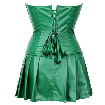 Kranchungel Women's Punk Rock Faux Leather Corset Retro Goth Waist Cincher Basque Bustier 6X-Large Green