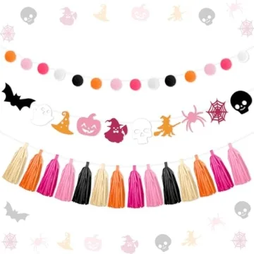 Kreatwow Pink Orange Halloween Birthday Decoration Halloween Tassel Garland Banner Halloween Hanging Garland Skull Bat Spider Ghost Supplies for Birthday Wedding Baby Bridal Shower Bunting Supplies