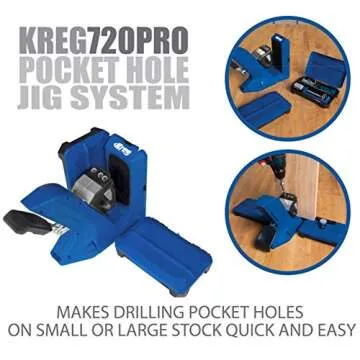 Show moreIntroducing the ultimate woodworking solution, the Kreg Pocket-Hole Jig 720PRO, now available with the KHC3 Face Frame Clamp and the KHCRA Right Angle Clamp. This powerful pocket-hole jig is specifically designed for both seasoned woodworkers and novices alike, providing professional-grade results with ease. Crafted with durability and precision in mind, the Kreg 720PRO features a user-friendly setup that allows you to create sturdy, invisible pocket holes effortlessly. The included face frame clamp ensures a secure grip for your projects, while the right angle clamp aids in achieving perfect corners and joints. You also receive the SK04 Starter Pocket Hole Screw Kit, giving you everything you need to get building right out of the box!