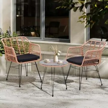 KROFEM 3 Piece Wicker Patio Bistro Furniture Set, Includes 2 Rattan Chairs and Glass Top Table, Ideal for Porch, Outdoor, Backyard, Apartment, Balcony, Natural
