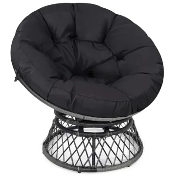 Show moreIntroducing the KROFEM 37" Wicker Papasan Circle Chair, your new favorite seating solution perfect for both indoor and outdoor spaces! Featuring an exclusive 360-degree swivel mechanism with quiet movement, this chair allows you to effortlessly turn and enjoy your surroundings without the irritation of squeaks or noise. Made with a sturdy powder-coated steel frame, this delightful piece ensures years of rust-free enjoyment while supporting up to 440 lbs. Its robust design is topped with a thick, padded over-stuffed cushion that uses virgin polyester fill, giving you that ultimate "melt into the chair" feeling. The high-quality fittings and craftsmanship ensure that even during extended use, you will feel enveloped in comfort.