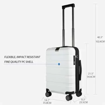 KROSER Hardside Expandable Carry On Luggage with Spinner Wheels & Built-in TSA Lock, Durable Suitcase Rolling Luggage with USB Port, Carry-On 20-Inch, White