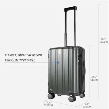 KROSER Hardside Expandable Carry On Luggage with Spinner Wheels & Built-in TSA Lock, Durable Suitcase Rolling Luggage with USB Port, Carry-On 20-Inch, Steel Grey