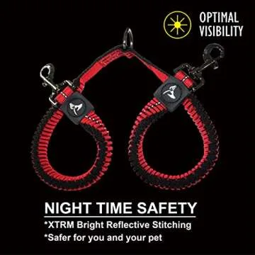 The leash also includes a shock-absorbing bungee webbing that protects you and your pets from sudden jerks or pulls, making walks more manageable. This feature allows your dogs to roam freely without the risk of causing discomfort during their enthusiastic pulls.