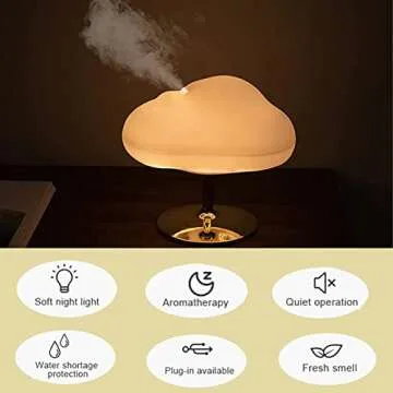 Show more Discover the captivating KRYCRHIA Cloud Shape Humidifier, a stunning addition to any room that combines functionality with a delightful aesthetic. This unique humidifier is designed in the shape of a cloud, effortlessly adding a touch of whimsy and tranquility to your space. When activated, it emits a fine mist of water vapor, reminiscent of gentle clouds floating in the sky, creating a serene atmosphere that's perfect for relaxation and comfort.