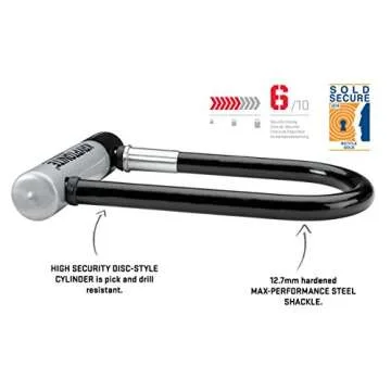 Show more Introducing the ultimate protection for your bicycles and valuable equipment, the Kryptonite U-Lock. Designed with high-security in mind, this lock features a 12.7mm hardened performance steel shackle that provides maximum resistance against cutting and leverage attacks, ensuring your possessions remain safe. Its patented locking system utilizes a hardened double deadbolt design that adds an extra layer of defense against twist attacks. Equipped with a high-security disc-style cylinder, it's resistant to picking and drilling, making it one of the most secure locks on the market.