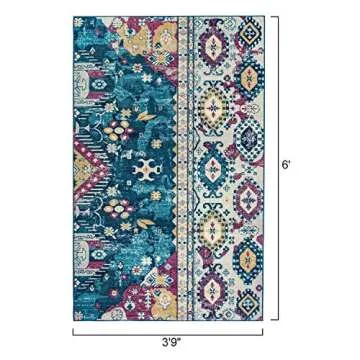 KSANA Soft Runner 3'9" x 6' Area Rug, Luxury Carpets for Living Room, Bedroom and Hallway (Moroccan Blue/Phlox Pink)