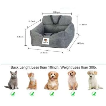 KSSDLSM Dog Car Seat for Small Dogs, Both Sides with Storage Pockets, Removable Dog car Travel Bed, Puppy Booster seat - Gray