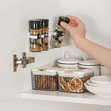 KTATA 20 Pcs White Kitchen Spice Gripper Clips With Base, Spice Jar Not Slip, Stable Spice Organizer, Can Holds 20 Jars(With 20 adhesives)