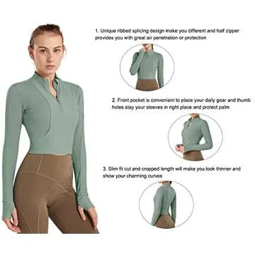 KTILG Women's Workout Jacket Half Zip Running Track Jackets Long Sleeve Athletic Pullover with Thumb Holes Green S