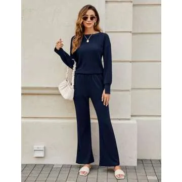 Indulge in comfort and style with the KTILG Women's Fall 2 Piece Pajamas Ribbed Knit Boat Neck Lounge Sets. Crafted from a trending new ribbed knit brushed fabric, this ensemble embodies the perfect blend of elegance and ease. Designed specifically for lounging, traveling, or even getting a good night’s sleep, its soft, breathable, and highly elastic material ensures that you can feel comfortable no matter the occasion. Whether you're on a long flight or enjoying a cozy night in, this set...