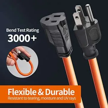 Show more Introducing the KTMC 25ft 16AWG Outdoor Extension Cord, a perfect blend of durability and reliability for all your power needs! This 25-foot extension cord is designed to withstand harsh environmental conditions, making it the ideal companion for both indoor and outdoor use. Encased in a weatherproof PVC vinyl jacket, it effectively resists moisture, abrasions, and UV rays, ensuring a long-lasting performance. The striking orange color not only enhances visibility but also adds a touch of style to your outdoor setup.