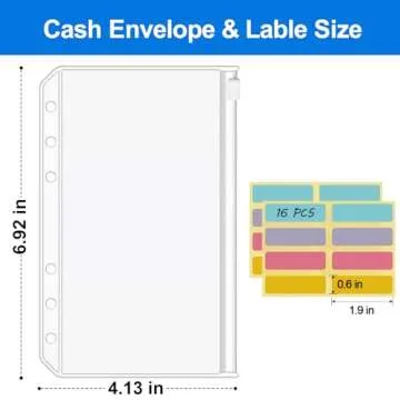 KTRIO 16PCS A6 Binder Pockets 6 Holes Cash Envelopes for Budgeting, Clear Zipper Pouch Folders A6 Planner Inserts, Waterproof PVC Loose Leaf Filing Bags Plastic Money Coupon Sticky Notes Organizer