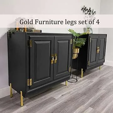 Kualuzt 6 inch Gold Furniture Legs Set of 4 Heavy Duty Metal for Sofa Couch Dresser Cabinet Coffee Table Dresser TV Stand Cabinet Replacement with Rubber Floor Protectors (6 inch, Gold)
