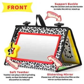 KUANGO Tummy Time Mirror Toys for Babies, High Contrast Activity Montessori Newborn Toys, Black and White Baby Toys 0 3 6 12 Sensory Infant 0-3 Months