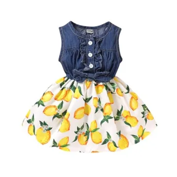 Kucnuzki Denim Princess Dress for Toddler Girls 4/5T - Summer Yellow Skirt