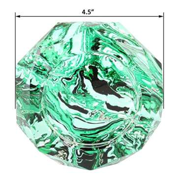 Kufox Marbling Crystal Cigarette Ashtray, Colorful Octangle Shape Glass Ash Holder Case with 4 Grooves, Decorative Tabletop Smoking Ash Tray for Indoor and Outdoor (Forest Green Marbling)