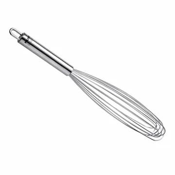Show moreIntroducing the **Kuhn Rikon 10-Inch French Wire Whisk**, a kitchen essential that combines elegance and functionality. Crafted from high-quality stainless steel, this whisk features multiple thin yet flexible wires that effortlessly incorporate air into your mixtures, creating fluffy eggs and emulsified dressings in minutes. The barrel handle is designed to be sealed and waterproof, ensuring durability and longevity. With a convenient hanging loop, this tool can easily be stored within reach, making it a practical addition to any culinary space. Say goodbye to flimsy whisks that bend under pressure; this sturdy construction guarantees reliable performance every time.