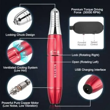 Introducing the KUIIYER Electric Nail Drill Machine, your ultimate companion for achieving salon-quality nail results right at home! This professional-grade nail drill kit operates at an impressive 30000 RPM, delivering powerful performance that caters to both acrylic nail enthusiasts and seasoned professionals. The versatile functionality of this electric nail drill allows for varying speeds, enabling you to easily adjust the power to meet diverse manicure and pedicure needs....