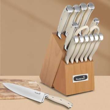 When comparing the Kuisine Kitchen Chef Knife Block Set with other brands, it's clear that its blend of advanced technology and traditional craftsmanship sets it apart. While many knife sets fall short on durability or ergonomic design, Kuisine's high carbon stainless steel ensures blades stay sharper for longer, and the built-in sharpener provides convenience that others lack. This combination of performance and user-centric design makes it a standout choice among kitchen tools.