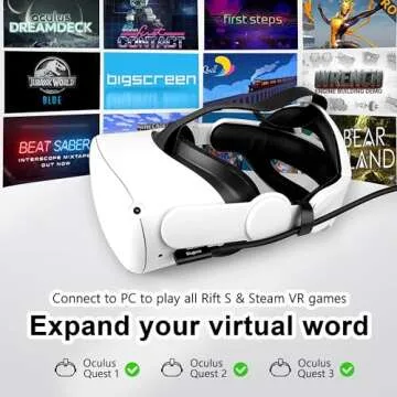 Show moreUnleash the full potential of your virtual reality experience with the Kuject Link Cable, specially designed for seamless compatibility with Quest 3/2 and Pico 4. This 20FT cable transforms your VR gaming sessions, allowing you to connect your headset to a gaming PC effortlessly. With its ability to support a wide array of Rift applications and games, the Kuject Link Cable is a game-changer for enthusiasts who crave superior performance and immersive gameplay. Featuring a vibrant nylon braided design, this accessory not only looks great but also ensures durability and longevity.